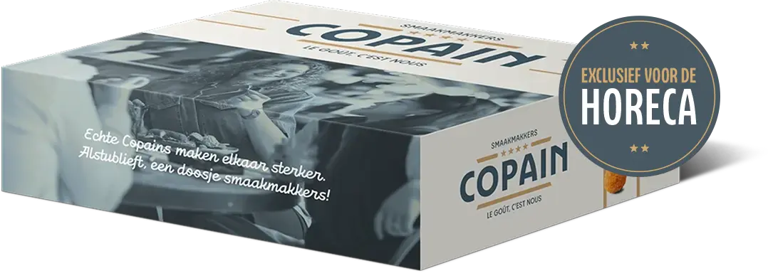 Een echte Copain, in welke vorm ook, doet watertanden. Vanwege de prijs, prestaties én de tomeloze passie voor die perfecte smaak. Copains zijn pure smaakmak(k)kers bij de aperitief, maar ook heerlijk om mee te borrelen, als tapas of lunch. Smakelijk ondernemen!